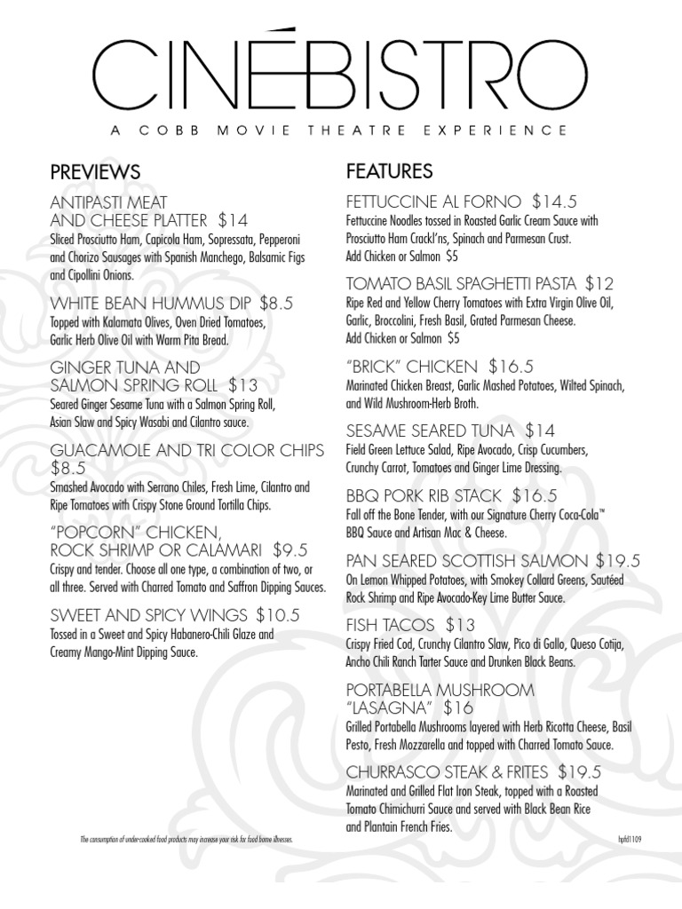 Cinebistro At Hyde Park In Theater Menu Pdf Potato Chip Salad